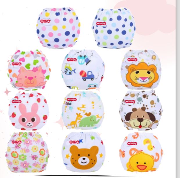 Lavables y reutilizables, estos pañales de entrenamiento están hechos de Bambu Terry con un forro absorbente. Tienen acolchado adicional en la parte delantera para pequeños accidentes y elástico en la cintura y piernas para mayor comodidad. Disponibles en diferentes diseños.